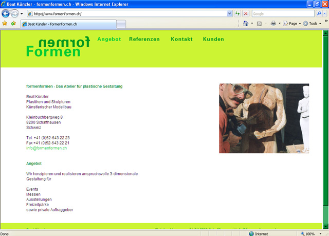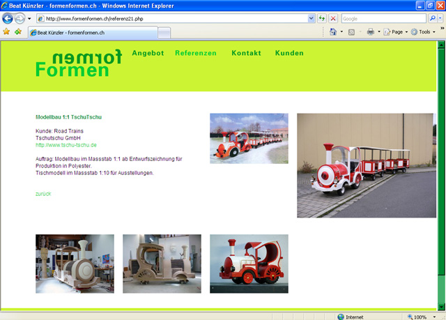 Der Internetauftritt präsentiert die Referenzarbeiten des Künstlers. Die Gestaltung erfolgte in Zusammenarbeit mit dem Kunden; die enge Eingrenzung auf drei Grüntöne bei der Farbgestaltung war seine Anregung. In diesem Sinn sollen nicht nur die Werke gezeigt werden, sondern auch der dahinter stehende Gestalter mit seinen hohen ästhetischen Qualitäten. Nicht zufälligerweise hat sich der Aufgabenbereich von Beat Künzler in den letzten Jahren ausgehend von klassischen Bildhauerarbeiten hin zu gestalterisch wie auch unternehmerisch fordernden Grossprojekten bewegt.