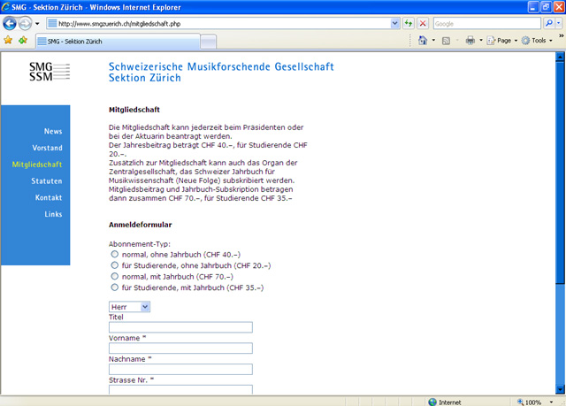 Einfacher Internetauftritt mit schlichter Gestaltung. Mit einem Kontaktformular ist es möglich, sich für die Mitgliedschaft anzumelden.