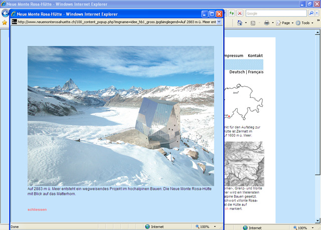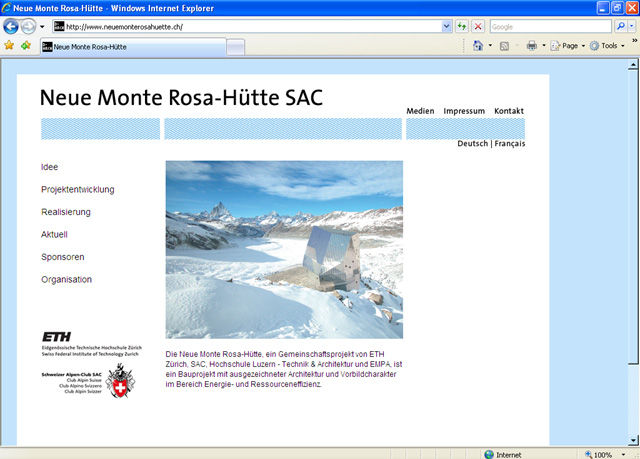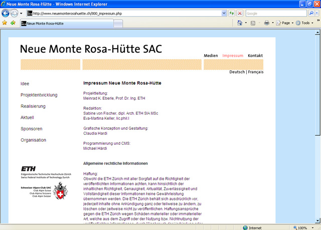 Beschreibung CMS). Alle Seiten liegen in zwei Sprachen (deutsch und französisch) vor. Der Server und das CMS-System wurden so konfiguriert, dass bei der Anwahl des französischen Domainnamens als Erstsprache französisch erscheint.