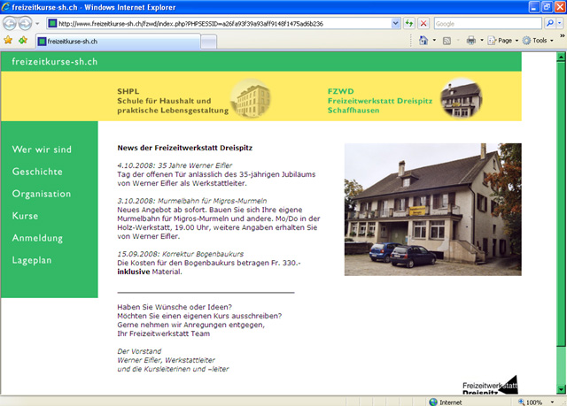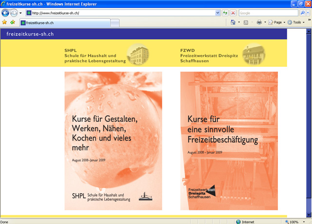 Die beiden durch die Stadt Schaffhausen unterstützten Institutionen SHPL und FZWD bieten hier ihr halbjährliches Kursprogramm an. Mit Hilfe meines CMS können die Kunden die Inhalte selbst updaten (siehe