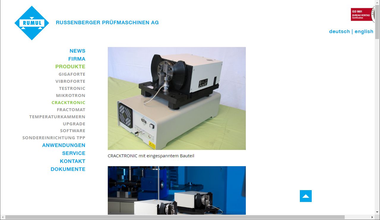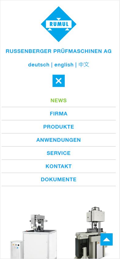 Das Erscheinungsbild wurde bewusst auf die Farben Cyan und Weiss reduziert. Im Zentrum steht dabei das in der Öffentlichkeit bekannte RUMUL-Logo, das ursprünglich aus den 60er-Jahren stammt. Das von mir entwickelte CMS erlaubt die Publikation in den Sprachen Deutsch, Englisch und Chinesisch. Die Bilder werden neu im Format 16:9 in einem deutlich verbreiterten Desktop-Layout gezeigt. Nebst dem Responsive-Layout für mobile Geräte wurde auch die Ausgabe im Druck optimiert. Die ausgedruckten oder als PDF gerenderten Produktseiten können der Firma als Ersatz für Produktprospekte dienen.