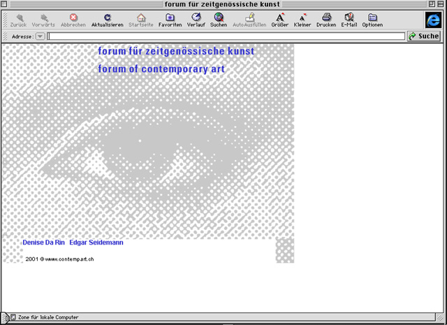 Der Internetauftritt präsentiert die Galerie und ihr Programm. Durch ein einheitliches Bild-Text Konzept können die Abbildungen zunächst in der Rubrik 'Vorschau', dann unter 'Ausstellung' und schliesslich unter 'Katalog' eingesetzt werden. Das Konzept regelt und vereinfacht die durch den Galeriebetrieb periodisch erforderliche Erneuerung des Websites. Aufgrund der besonderen Lage am Stadtrand von Zürich wird der Anweg zur Galerie mit zwei Plänen und einer kurzen Bildreihe dokumentiert.