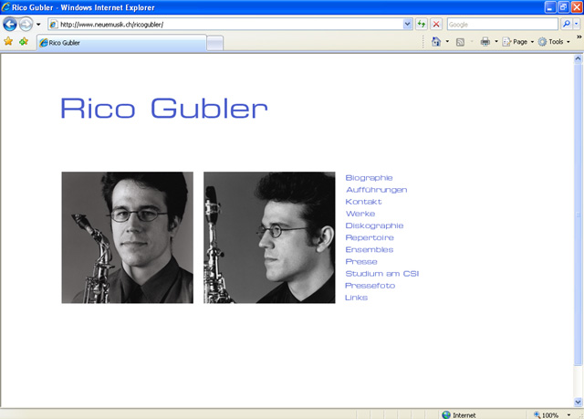 Einfache Präsentation von Programm und Repertoire des Musikers. Die Seite ist als Modul konzipiert; andere Musiker präsentieren sich ebenfalls mit diesem Konzept. Der Inhalt der Seite wird von den Kunden selbst aktualisiert.