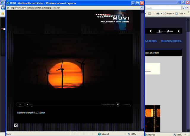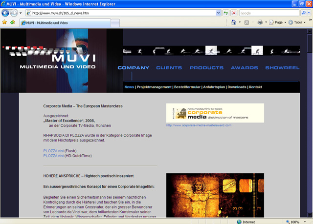 Die Firma MUVI AG ist im Bereich Werbe- und Imagefilm für Grossunternehmen tätig. Der Internetauftritt richtet sich an ein Publikum mit Breitband-Internet-Anschluss. Über 30 Filmbeispiele sind online abrufbar. Die Filme sind im Format 'Flash', weil dieses Plugin sehr weit verbreitet ist.