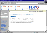 Die Werbeagentur ergo.ch gestaltete im Herbst 98 ein neues Print-Erscheinungsbild für die FDP - PRD. Ein wichtiges Anliegen war, die französisch- und die deutschsprachigen Sektionen der Partei (visuell) näher zueinander zu bringen. Creondesign.ch gestaltete die Eingangs-Animation der Seite, von mir sind die Menuelemente und Buttons. Wichtig war ein möglichst einheitlicher und einfacher Aufbau der Navigationselemente sowohl für die deutsche wie für die französische Version. Die Gestaltung der Inhaltsseiten und die Spezifikation der Typografie wurde mittels Musterseiten festgelegt.